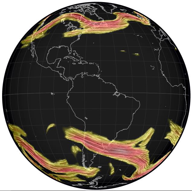 Alguns sites mostram estas rajadas de vento (jet stream). Um deles é o https://www.netweather.tv/charts-and-data/global-jetstream que se mudar o zoom e mover o globo terrestre nos dá uma imagem igual a que está nesta publicação. Se estiver sob as áreas coloridas (demora um pouco em aparecer.. tem de ter paciência) nada de planetas.
