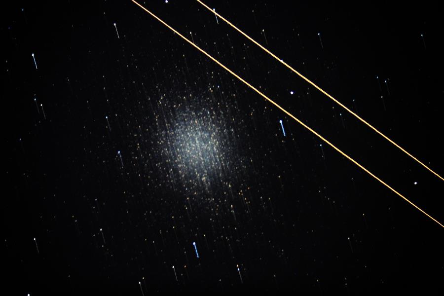 A ideia aqui é remover do processamento as imagens onde algo saiu errado. Por exemplo, a primeira imagem, de Omega Centauri, que mostro aqui na publicação. Além do seguimento do telescópio ter falhado ainda passou um avião enquanto fazia a foto. As imagens de Dark devem ser predominantemente negras... veja se não entrou luz por algum lado.