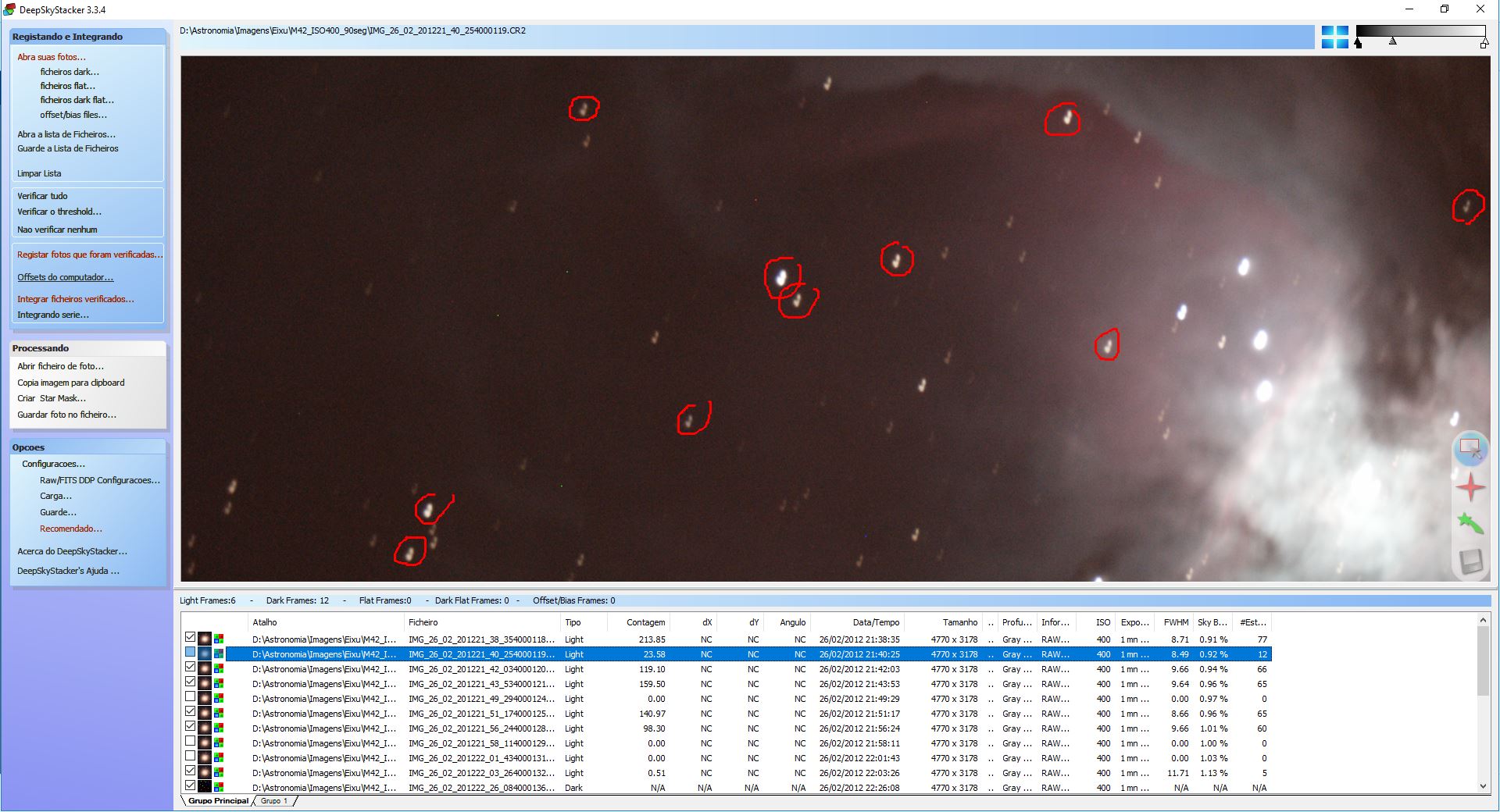Com as dezenas de fotografias individuais de LUZ e DARK o próximo passo é examinar cada uma das imagens procurando por problemas durante sua obtenção.