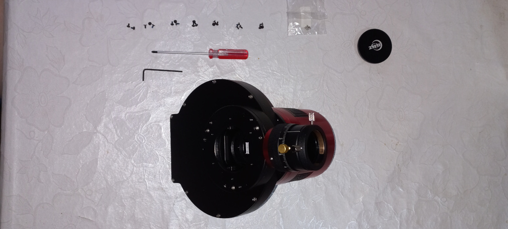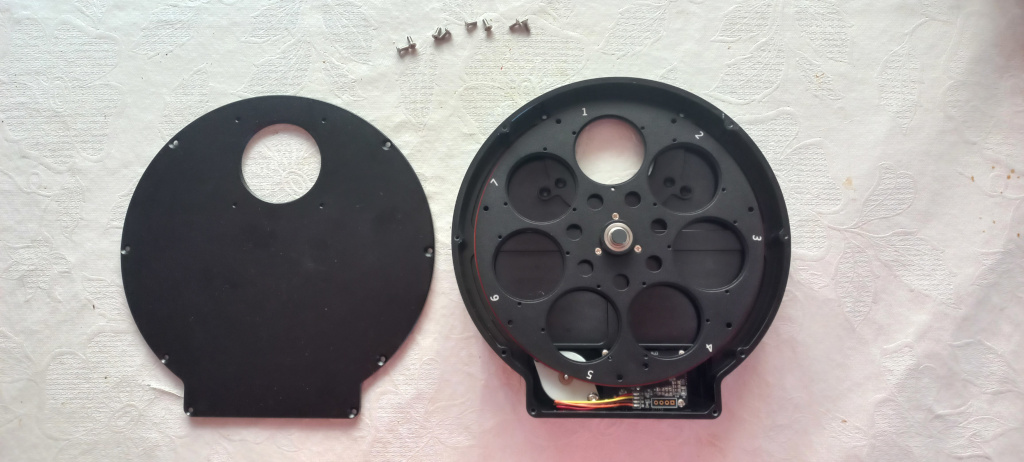 10) Na tampa da roda de filtros vamos aparafusar o OAG-L. Já podemos fechar a roda de filtros.