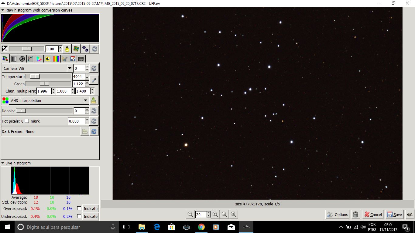 Como comentado antes nesta série de publicações, quando fazemos fotografias do céu o ideal é salvá-las num formato que não destrua a imagem (que é o que acontece com o formato JPEG, tão comum, e o único disponível, em câmeras mais simples).